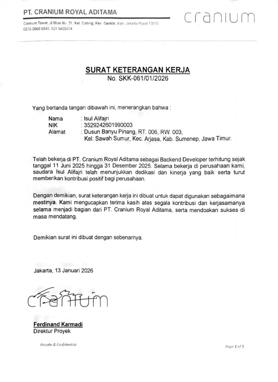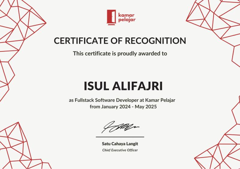 Hello! I'm Isul Alifajri, a Web Developer with over 3 years of experience building websites using PHP, HTML, CSS, JavaScript, jQuery, Laravel, Golang, Python, CodeIgniter 3, Vuejs 3, and Bootstrap, Tailwind.