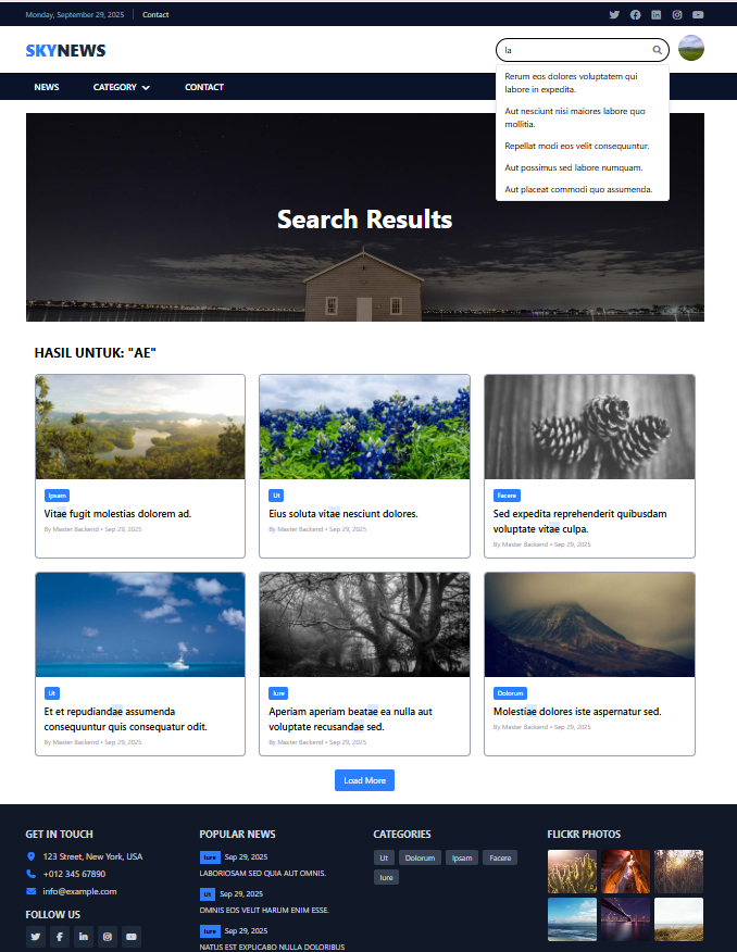 - Backend CRUD: Post, Category, Company Profile, Contact